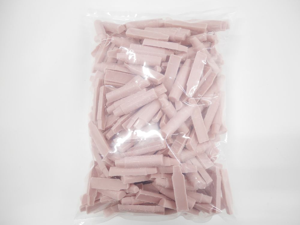 ピンク色のクレヨンの形のいちご味の準チョコレートです。