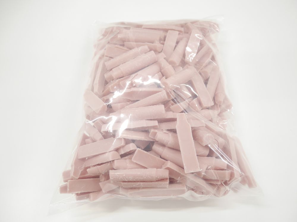 ピンク色のクレヨンの形のいちご味の準チョコレートです。