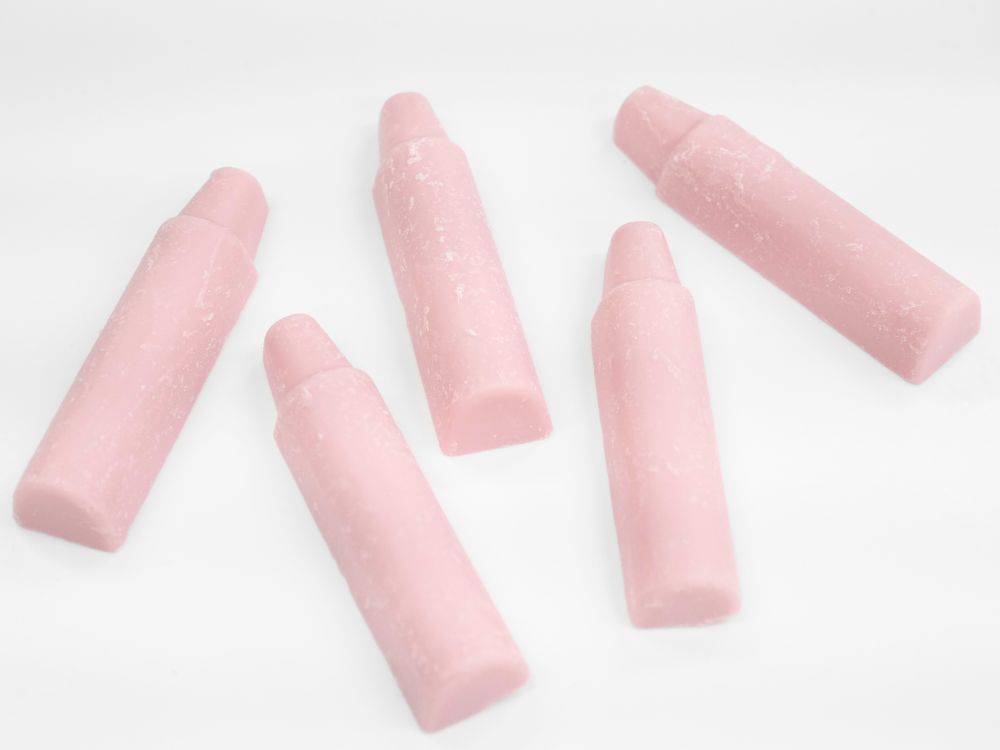 ピンク色のクレヨンの形のいちご味の準チョコレートです。